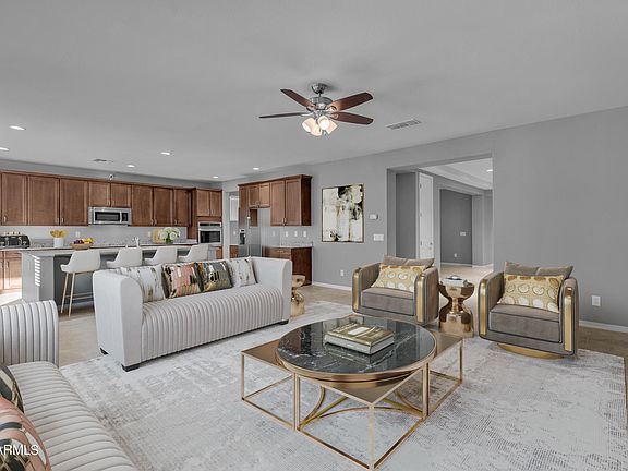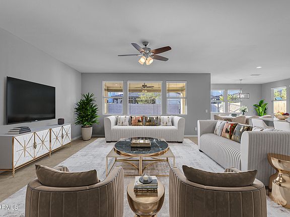 Spectacular Move In Ready Home in the Award Winning Master Plan Community of Eastmark. Original owner's second home that has only been used up to 8 weeks per year. This meticulously cared for home comes complete with landscaping, window coverings, ceiling fans and a soft water system. The kitchen has beautiful cabinetry, granite countertops, a huge kitchen island and walk in pantry. Spacious owner's suite includes dual sinks, separate soaking tub and shower and a wonderful walk in closet. This home also comes with an ensuite perfect for guests. Did I mention all the guest bedrooms include walk in closets? Want to add a pool to the backyard or maybe design your own backyard oasis. This backyard will be PERFECT! 3 car tandem garage provides fabulous storage. Additional features .... include: coffered ceilings at the entry way, 8 ' tall interior doors, 36" cooktop with separate wall oven, microwave and dishwasher all lightly used, central vac, artificial turf at backyard, side entry door at garage and two tone paint throughout. Washer and dryer convey with the home.