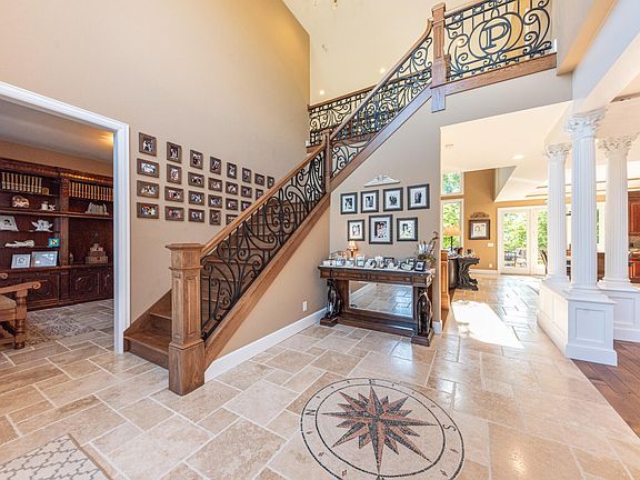 Have you been searching for a one-of-a-kind home in which a custom Builder has lovingly designed and constructed for his/her own family? Living in a neighborhood while having a more private 'Up North' vibe? Someone else taking the time to meticulously plan out every detail of your new home to perfection while sparing no expense? Well, wait no longer! From the moment you enter the circular driveway you are greeted with the timeless stucco and limestone exterior, meticulously maintained landscape to include manicured trees and shrubs, flower beds and hand built trellis, and a stunning tile walkway leading to the large enclosed limestone front porch with custom rod iron railing and gorgeous solid wood front door. The interior is bright with a well thought out open floor plan with high end finishings everywhere you turn--Chelsea plank flooring, travertine tile, custom rod iron railing, solid hard wood doors throughout, and hand made tile and mosaic artwork masterpieces. Home design features include the front study (also designed as a 5th bedroom) with cherry bookshelves with library ladder and large closet, front dining room with wainscoting and grand pillars, the great room with cathedral ceilings, incredible wood burning fireplace with hand carved marble surround and cherry built in shelving. True Chef's kitchen with massive center island with beverage refrigerator and microwave, custom cherry cabinetry with well matched granite countertops, top of the line stainless steel appliances, large capacity refrigerator with French doors, gas range with custom hood vent over the mosaic tile centerpiece, and doors leading out the raised tile balcony/patio (made of concrete and steel) overlooking the best views in the neighborhood--mature trees and Ella Lee Lake and her waterfall! Other main floor features include a walk-in pantry like none other, half bathroom, side door leading out, and TWO stairways leading to the lower level. The upstairs Primary bedroom suite will not disappoint--it is spacious with Chelsea plank flooring, has a sitting area with picturesque views of the backyard, and opens to the spa inspired bathroom (can easily install a privacy wall) with corner whirlpool tub with the water stream coming down from the CEILING!, full tiled shower to include a custom bench, alcoves, tiled ceiling with Rain shower head, dual side shower heads, stunning mosaic accent piece, and a glass Euro door. You will also love the vanity table, and huge walk in closet with custom shelving and storage, and a door leading to unfinished storage space--a future dressing room? craft room? private office? The second floor also showcases a large laundry room with cabinetry and a folding station, a Prince/Princess suite with private bath and large walk-in closet, the 3rd bedroom sits across from another full bathroom, and an open bride/walkway with gorgeous, custom rod iron railing overlooking both the great room and the front foyer. The finished lower level has the same high standard of finishings as the rest of the house to include the front and back entrance, wood style tile flooring, a media room with tray ceilings and multiple egress windows, workout room with 2 walls of windows and sauna, full bathroom with spa sized tiled shower (including the ceiling) with charming mosaic, bedroom, and storage room w/solid wood decorative door that would be ideal for a future wine cellar. This incredible estate is one of the OG's in Saline Valley Farms and sits on one of the nicest sites in the neighborhood. Other features include a 3+ car side entry garage, concrete driveway, wired for a generator, all of the tile in the house is prepped for heated flooring, built to last with one and a half inches of concrete underneath all of the flooring (Builder's home) 2 furnaces and 2 air conditioners, and so much more. Fantastic community with Ella Lee Lake, rolling hills, mature trees, only a 5 minute drive to Downtown Saline, low York township taxes and award winning Saline Schools. Short drive to 23N and 23S.