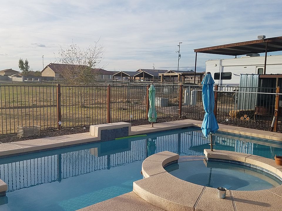 Location Location Location, this is a very well taken care of home with 3 bedrooms, 2 baths, 2 car garage, private pool with heated spa, over an acre irrigated lot, horse corrals, RV parking with shade and sewer connection. Too much to mention, come and see.