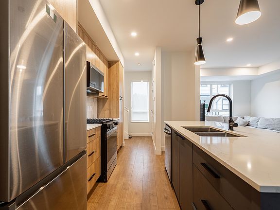 Double side-by-side garageCorner end homePrivate fenced yardRefined modern finishesGourmet kitchenCustom cabinetryPremium appliances
