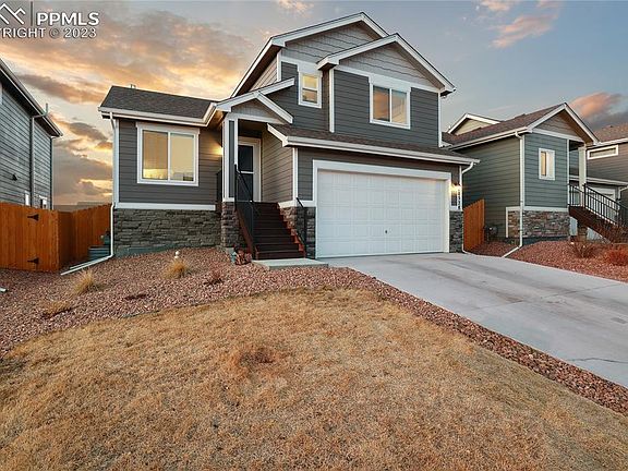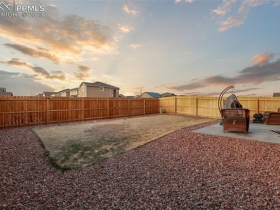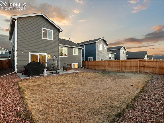 This is a beautiful and spacious home in the coveted Lorson Ranch neighborhood. On the south east side of Colorado Springs Just minutes from Both Peterson AFB and Ft. Carson. Then just Minutes from Shopping Centers Dining and entertainment. The home has an open floor plan throughout with 4 spacious Bedrooms and 4 bathrooms and the basement is finished! The back yard is large and has huge patio fenced in with a beautiful view of Pikes Peak, this makes it perfect for entertaining. This home is only 2 years old and has all the latest in designs and finishes. New build without the wait! this home comes with all appliances in place and two car garage. A MUST SEE !