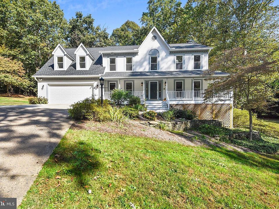 Nestled away in the blissful tranquility of Hillcrest Estates and proudly sitting on a private knoll of its own, you can almost hear the wrap around front porch whisper Welcome! Anytime of year is a great time to enjoy this home inside offers a home office on the main level and 5 spacious bedrooms plus a flex space on the upper level, and an open floor plan in the finished lower level. On the main level, if you prefer using your living room as a library or a music room, the built-in shelves are in place for you. Notice the wall space and the rich oak hardwood floors in the living room and separate dining room. Love a big kitchen with lots of cabinets and counter space? Youve found it, and with a bay window looking out to your private back yard and dogwood trees. Another favorite is the large laundry room off the kitchen with more storage and room to work. If you work from home, close the door to the back room and pull up to the built-in desk. A colonial floor plan favorite is the spacious family room off the kitchen to encourage family conversations while getting dinner ready. The focal point in the FR is the beautiful, wood burning stone fireplace, so perfect for Santa! Youll absolutely love the three season screened porch with skylights and cathedral ceiling, which expands the family room living space. Upstairs is a true grand size primary suite with a walk-in closet and a freshly remodeled bathroom. Upstairs offers five bedrooms total and one flex space. If you dont need five, use the dormer room as a dance or art studio, or as an upper level game/playroom. On the lower level the rec room is nicely divided by flooring changes and a dry bar, with the tiled side completed by a brick fireplace with gas logs. The game area of the rec room is wired for a pool table light as well. A full bath with grab bars and a storage room completes the lower level. The outside has as much to enjoy as the inside has to offer. Tiered decks with electric on the lower deck for a hot tub, fenced area so you can safely let your dog outside, and plenty of yard space to spread out. So much has been done to prepare for the new homeowners in this well-maintained one owner home. Painted throughout, new carpeting on the upper two levels, brand new grand master bathroom, new garage door, fresh screening on the fabulous, screened porch. In the last 5-7 years this home has a new architectural roof and gutters, new sidewalk and concrete driveway repair, new main level heat pump replacement, new windows and French doors, both chimneys have been inspected and repaired, and the septic tank pumped and distribution box replaced. Full septic inspection was performed August 2021 as well as chimney inspection and repairs. Inspections and plat in Docs. This home backs to 140 acres with only 3 building sites, so your privacy will be guaranteed. Come see!