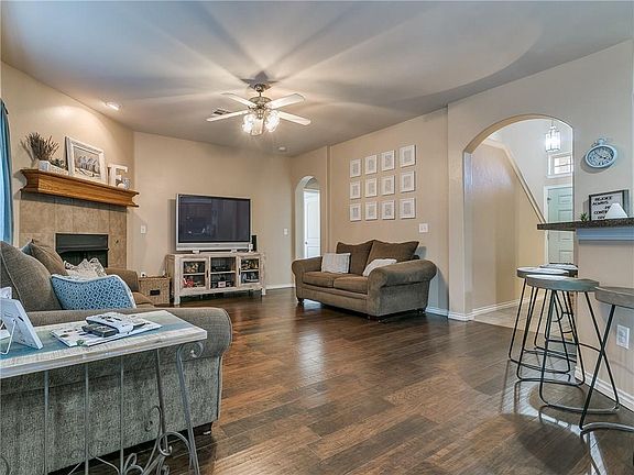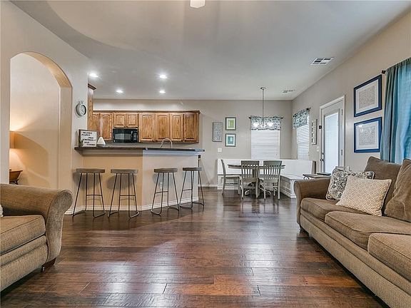 Super cute home in the friendly West Winds neighborhood! Updates include beautiful hardwood floors, kitchen hardware, custom knockers in both full bathrooms, and an extended patio and sidewalk in the backyard. The large master bedroom is downstairs while the other three bedrooms and playroom are upstairs. The upstairs full bathroom has a large vanity with two sinks. The garage has plenty of space for shelving, bicycles, or any other kind of storage needs. The back patio is on the east side of the house so you can enjoy the summer evenings out of the blaring sun. The neighborhood is quiet, safe, and has great access to NW Expressway. This home has been well maintained and cared for!