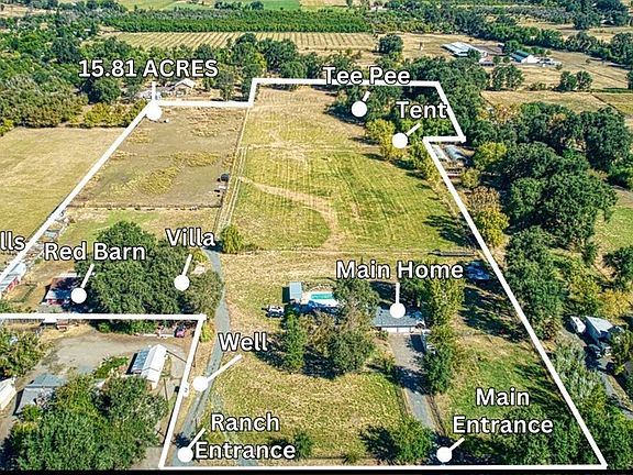Ranch estate in Witter Springs, CA on 15+/-acres of breathtaking land. Enjoy a private home with a business opportunity for vacation rentals and event venue.Three distinct and professionally designed homes. The MAIN HOME with a spacious open floor plan spanning 2,400 sqft, 4bd/2bth, featuring an updated chef's kitchen with custom solid wood cabinetry, an oversized island with granite countertops, walk in pantry and top-of-the-line stainless steel appliances. The outdoor amenities include, large 2 car garage, an inviting in-ground pool, spa, and covered BBQ area, providing a beautiful setting for sunset dinners and entertaining. A separate driveway takes you to the other homes (currently vacation rentals) Including the Tuscany-style VILLA, 1,600 sqft. and 2bd/1bth. The Villa's luxurious master suite features floor-to-ceiling windows, providing breathtaking panoramic views. The fully-renovated RED BARN, 2bd/2bth is 1,600 sqft. With an open floor plan & rustic charm make it perfect for intimate gatherings or tranquil moments. For those seeking a unique and unparalleled outdoor experience, the spacious and fully-equipped luxury glamping tent that sleeps six, as well as the Teepee nestled in a grove of trees, offer a truly indulgent retreat. Fully fenced and horse-ready with stalls and cross-fenced pastures, which produces up to 600 bales of hay yearly. There is two story tiny house, currently a country store & a walk in chicken coop. This awe-inspiring property promises refined country living at its very finest. Experience the relaxation the moment you arrive, or come home. This truly is a MUST-SEE property.