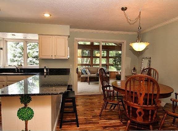 Open floor plan offers spacious rooms throughout. Kitchen has granite countertops, stainless steel appliance & hdwd floors. Private master bath, new carpet, paint & lighting. Three season porch & private access from your backyard right into Hyland Park!