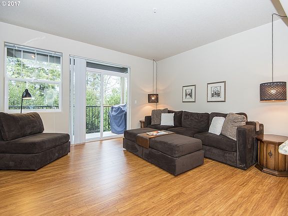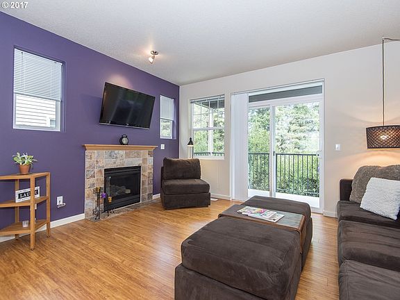 Designer perfect, turnkey end unit townhouse style condo backing to tree-line view! Light & bright great room floor-plan featuring 14 ft granite island w/eat-in bar, SS appliances, gas range, ample maple cabinetry & spacious dining area! Liv rm w/gas frplc opens to covered balcony! Master-suite w/inset ceiling & double vanity! Extra deep 2 car garage+pvt driveway! Central A/C & heat! Close to shopping, Intel, Willow Creek Max line!