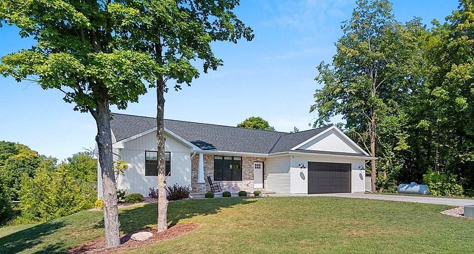 Nearly new Door County ranch home with lower level walk-out close to dining, shopping, 2 beaches and much more. Main living is a one level, open-concept that allows for 2 bedrooms on one side, plus a private primary suite on the other, plus laundry, front porch and balcony dining overlooking woods. Lower level features recreation room w/ wet bar/coffee bar, 4th bedroom, bonus office/5th bed, 2 more full baths, plus oversized 2 car garage and walk-out patio. Enjoy all of the conveniences of Sister Bay with public utilities, high speed internet & more; close to all amenities. Furnishings, fixtures & appointments are available separately. If you're looking for a lovely, almost new home in a prime location, this is it. Call for details today.