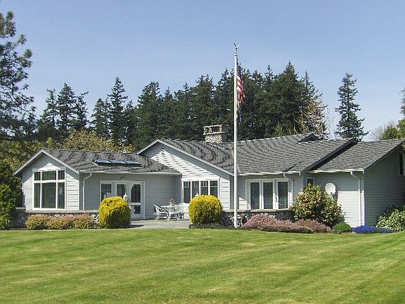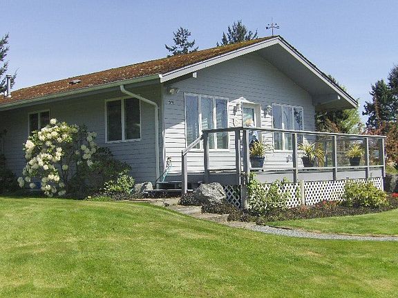 Sensational Custom Waterfront Home on 1.53 AC. Enjoy the 200+ ft frontage w/access rd down to beach. One Level Rambler with Views from most rooms. Living Room with French Doors to View Patio. Harwood Flrs, Skylights, Gourmet Kitchen with Corian Counters. Eating Bar, Double Oven, Butler's Pantry. Furnished Guest House/Accessory Dwelling w/LR,DR,Kit, Bdrm, Bth. 2 Car Att Gar Plus 1890 Sq Ft Det Gar/Workshop. Circular Driveway. Just drive onto Samish Island, no ferries needed. 2 Day BUMP notice.