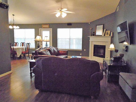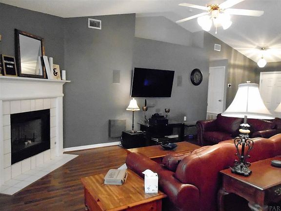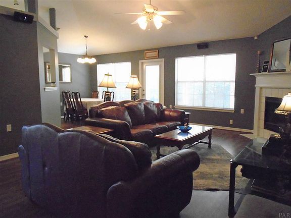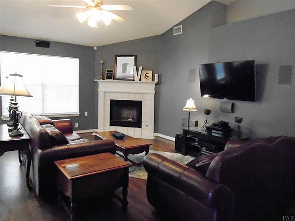 Check out the new 3D Virtual Tour! Cozy and convenient to Navy Federal, I-10, and military bases. Springfield S/D is located off Blue Angel Pkwy. in the Beulah elementary school district. There are two play grounds in the neighborhood as well as a pavilion with picnic tables and a dog park area. This home is all brick with a 2 car garage on a nice sized .27 acre lot. The shady back yard is privacy fenced and backs up to woods. Sit on the huge covered patio and watch the kids splash in the 16' wide, 48" deep, above ground pool. Inside, there are high ceilings, plant ledges, and spacious bedrooms that all have walk-in closets. The fireplace is plumbed for gas logs and has never been used. New stainless appliances in the large eat-in kitchen, inside laundry, surround sound, nest doorbell and thermostat and much more.