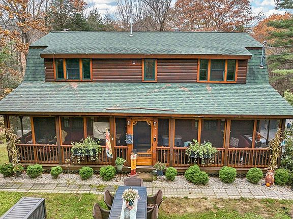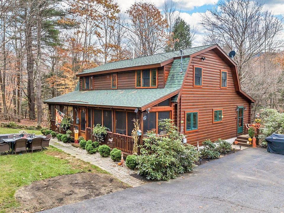 Gilford - Meticulously maintained 1988 Log home offering great space for the whole family. 5 Bedrooms, 3 Baths on 2.5 acres. Open flow thru the kitchen, dining area and breakfast nook. The kitchen has lots of beautiful granite counter space, kitchen island, stainless steel appliances and is open to the dining room and breakfast nook! The perfect flow for entertaining your friends and family! You will love sipping your coffee in this charming breakfast nook overlooking your back yard. Additionally, there's Brand new flooring in the Living Room, Septic tank was replaced 2018, a Generac generator, 1st floor Primary bedroom with a full bath, the second floor has 4 bedrooms and a full bath. The walk out lower level is heated with a finished room that's perfect for an office/TV room, a half bath, laundry room, storage area and steps out to the private backyard. Though the home is great in size, you will enjoy lounging on your peaceful 3 season 38 x 8 screened porch, listening to the birds sing, watching a game or having dinner. There's pretty mature perennial's all around the home come spring /summer time. Nestled between Gunstock and Belknap mountains, yet so close to everything! Location is key, 1.6 miles from Gunstock ski area, 3 Miles to the Marina. Gilford town beach, school, shopping and restaurants approx. 5 miles away. Bring the family to enjoy 4 seasons of fun! Just in time for ski season!
