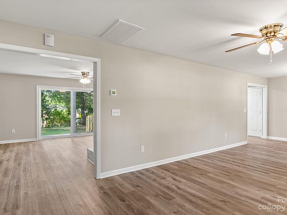 UPDATED Ranch Home READY for you! Beautiful Barnwood LVP Flooring throughout this ENTIRE home. OPEN Floorplan! HUGE Family Room w/ceiling fan & Formal Dining Room that features a Designer Chandelier as you enter this Home. KITCHEN IS ALL NEW w/White Shaker Cabinets, Dallas White Granite, Designer backsplash, center Island w/Seating & Full SS Appliance Package! Hangout in the Flex Space in the Kitchen w/Fireplace. This area could be a wonderful Breakfast Area or set it up as a Keeping Room. Off the Kitchen is the HUGE Great Room with Vaulted Ceilings & Fan. Utility Storage Room is in this area with the Laundry. Down the hall you will find all the Bedrooms with Ceiling Fans. Guest Bath is impressive with Designer Tile HUGE Shower w/Bench & Dual White Vanity with Granite Top. Primary Bed room has Fan & Barndoor Closet opening! Primary Bath is all new with Dual Granite Vanity & another walk-in shower. YARD is HUGE, Fenced & has beautiful Mature Trees! NEW Windows/Roof! Come see this one!