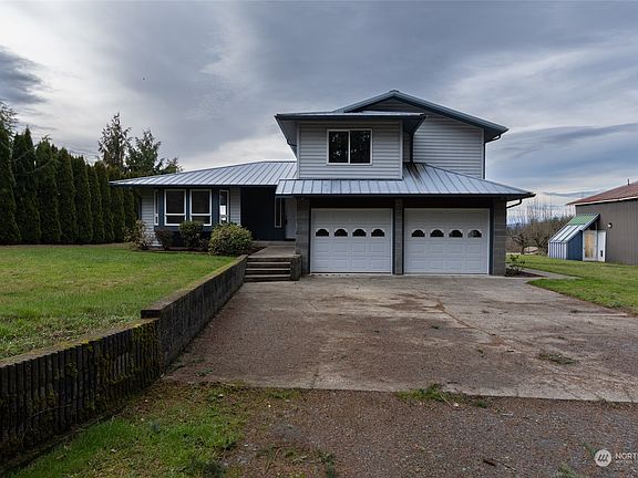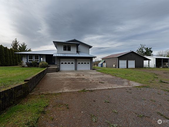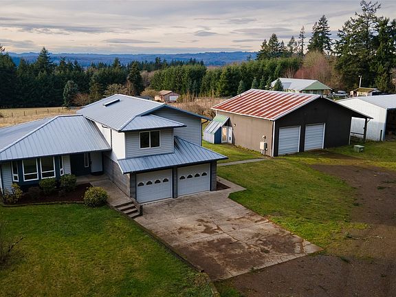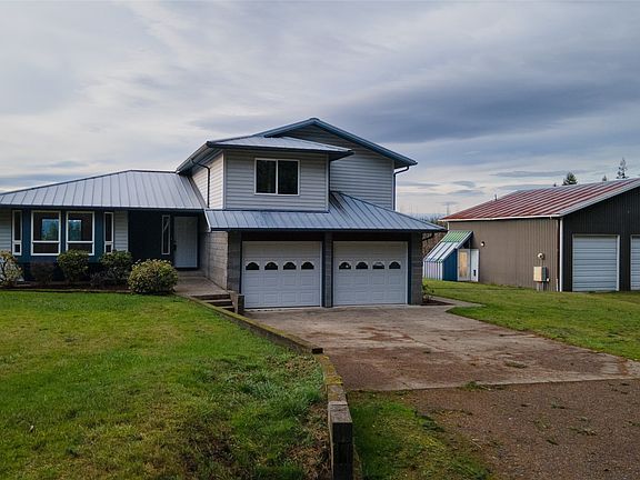 Amazing View~Beautiful 3 bed/2 1/2 bath 2043 sq. ft. house on 2.25 acres. Home is in an area of other beautiful homes in a private setting~ Many recent updates including new carpet, vinyl, interior paint, light fixtures, hardware, doors and heat pump. Large living room, dining room, second living room, kitchen with a view, two deck areas to enjoy your coffee and take it all in. Potential to subdivide property and add 2 more building lots. Property has a large 40 X 36 Shop with a loft and bathroom area started, stalls for animals and a 30 X 32 3 bay machine shed. Property is level with fruit trees, berries, fenced for animals and plenty of room for all your needs.