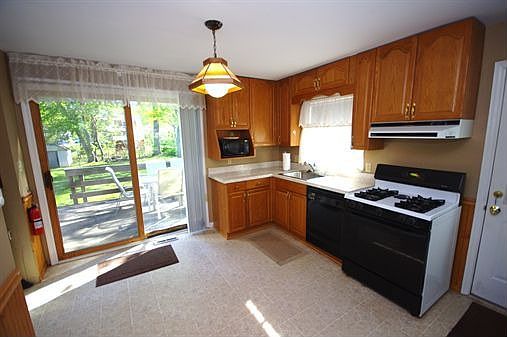 Sunny, bright home in park-like setting, quiet neighborhood. Completely updated throughout. All new appliances 2012-2013. New water heater 2012. Upgraded electric. Pella slider, Certainteed tilt vinyl windows, recessed lighting. Freshly painted rooms and woodwork accent in white and neutral color palette. Ceramic tile foyer, designer tile in bath. Added custom cabinet kitchen storage, efficient laundry utility closet, cost-saving central air and gas heat & cooking. No maintanence exterior w/ new gutter guards, enormous freshly stained deck w/ large level yard, mature trees, new perennial landscaping/gardens, large shed w/ electric and workshop. Brand new driveway and EP Henry paver walkway 2013. New six foot fence ensures your child/pet safety.