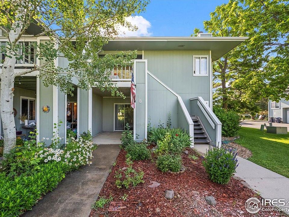 No stairs! Enjoy main floor living in this end unit condo with lots of natural light and great curb appeal. Move in ready! This 1 bed, 1 bath is spacious and has newer laminate flooring throughout that brightens up the open floor plan. Gas fireplace in living. South facing bedroom has plenty of closet of space. The kitchen includes all appliances and has lots of cabinet space for all your kitchen ware. The eat-in kitchen includes a separate dining area, and the slider from the dining room leads out to a large warm facing covered front patio with room for table, chairs and grill, and enjoying your coffee and quite time. Updated bath with walk-in shower, and newer windows. Attached 1-car garage and in-unit full washer and dryer. Low HOA, no metro tax. Central Lafayette location and easy access to Hwy 287, enjoy the convenience and location this condo provides. Close to Waneka Lake, shops and more. Property sold AS-IS.