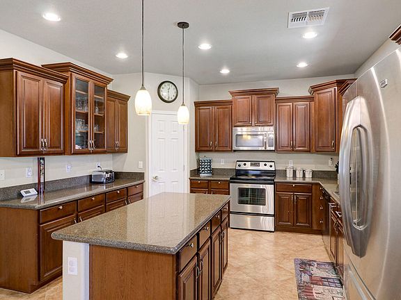 UPGRADED 4 bedroom 2.5 Bathroom home in fabulous San Tan Valley Location! Close to all shopping, dining and minutes to US 60. New Windows for energy efficiency, upgraded Staggered Cherry Finish kitchen Cabinets, Slab granite counter-tops and stainless steel appliances. This gorgeous home faces north south and backs to the communities green belt for extra privacy. 3 Car Garage, extended backyard patio and plenty of parking! Plenty of tile in all the right places!