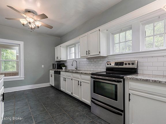 MOVE-IN READY and waiting for you! Discover this wonderful three bedroom, two updated full bath, brick home in a fantastic location. You are greeted by the spacious and inviting front porch with swing - a great space to relax or enjoy your morning coffee. The large living room features beautiful hardwood floors, a decorative fireplace flanked on either side by glass door built-in shelving and several windows providing ample natural light. The adjoining formal dining room spotlights a gorgeously bright bay window and is just a nice size for entertaining or private dinners at home. The sunny, modern kitchen shows off stainless appliances, a subway tile backsplash and plenty of granite counter space. Just beyond the kitchen you'll find the wonderful sunroom with BRAND NEW windows overlooking the elevated deck. There are two bedrooms on the first level and the second level encompasses the expansive primary suite with a landing that could accommodate a home-office desk, a bonus room that could serve as a walk-in wardrobe or nursery, an updated ensuite bath with and extra long linen closet, plus an incredible amount of additional closet and storage space. The walkout basement offers a laundry room, mechanicals, plus great opportunities for additional living space, a workout room, a tool room - the options are limitless. There is plenty of off-street parking with a driveway off Eastern Parkway plus a parking pad in the back with alley access. The location is ideal, located in Schnitzelbzurg with easy access to the Highlands, University of Louisville, Downtown, shopping and many trendy restaurants and retail in Germantown. Make plans to see 1053 Eastern Parkway today. It could very well be your new Happy Home!