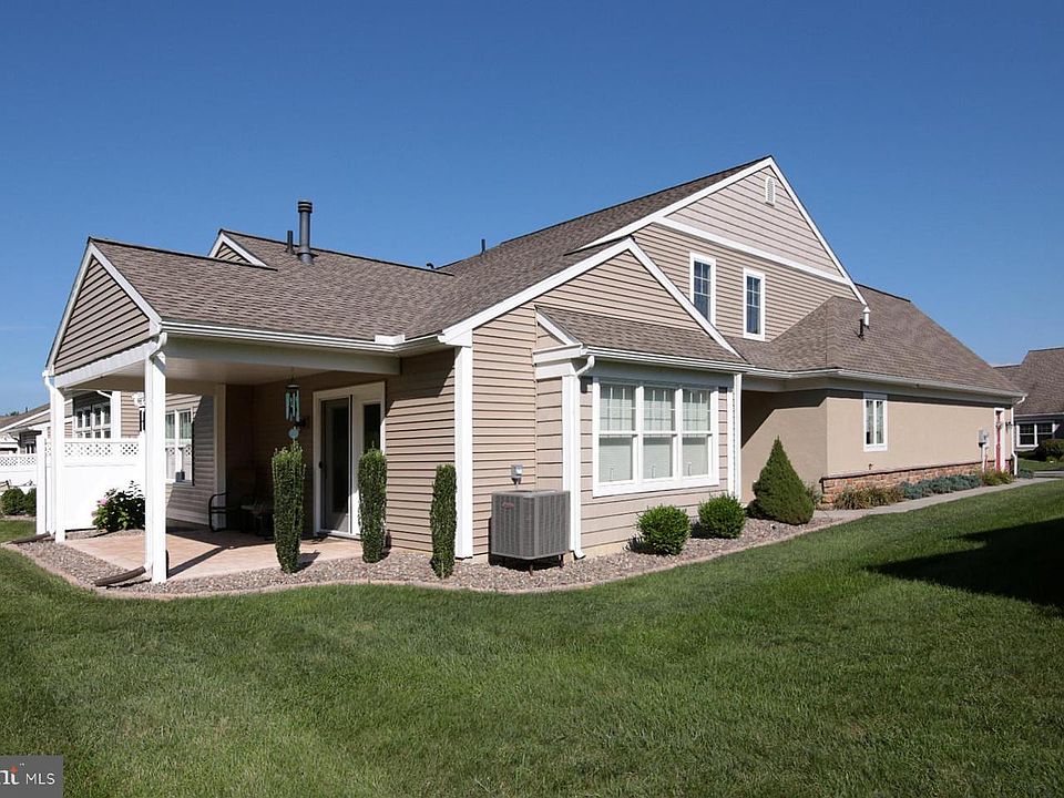 Spacious 1900 sq. ft. ranch with plenty of room for expansion or storage in the unfinished 2nd floor. Over 600 sq. ft. for you to create and design your own additional living space. The full bath has already been plumbed for you on this floor. 1st floor features cathedral ceilings, fireplace with mantle, open staircase and custom closet organizers. The fully equipped kitchen includes pantry, recessed lights, backsplash custom kitchen cabinets, pantry and all stainless steel appliances. This home shows like new so you will not need to build. There are also no more lots available to build a villa in the community. This premium lot allows a lovely private view from the covered patio. Alden place is a 55+ land lease community. with many activities. The land lease and HOA cover trash, snow removal and grass mowing, fertilizing, and landscaping. The monthly fees also pay for the tax on the land, common area maintenance and onsite management. Alden Place accesses Rails to Trails for hiking and biking and includes ponds for fishing. Community center with indoor pool,, spa, fitness room, billiards,coffee shop, crafts, and ballroom is optional to join at $300 per year per household.