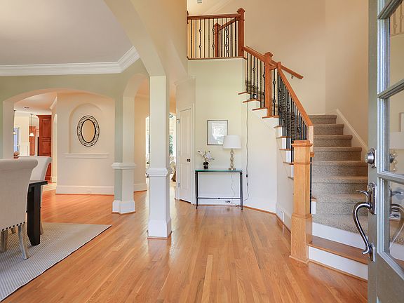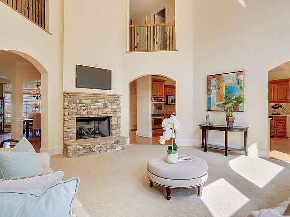 Fabulously decorated, fit for a luxury magazine. Open floor plan, two story family rm w/gas fireplace. Spacious living rm with cathedral ceiling. Lots of natural lighting. Intricate details: crown moldings, arched windows & door ways, bronze staircase spindles. A chef's delight w/ granite counter tops, island, breakfast area & S/S appliances. Spacious master bedrm on the main, w/coffered ceilings. Master bathrm has double vanity, sep. shower & bathtub, with walk in closet. Full unfin. basement. Close to Alexander Park, The Shopps at Web Gin, Restaurants, and more.