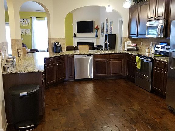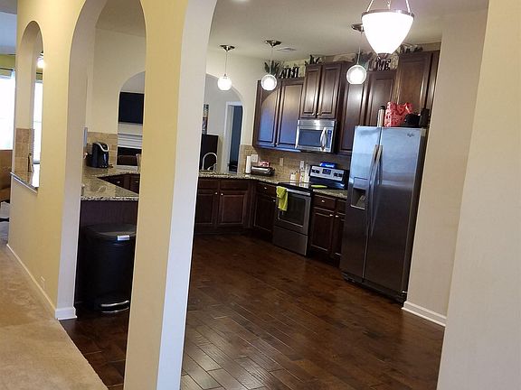 - Kitchen Features: Breakfast Area, Breakfast Bar, Pantry, View To Fmly Rm, Counter Top - Solid Surface