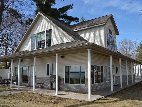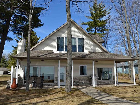 This exceptional lakefront home offers an amazing view of Houghton Lake situated on prestigious Long Point. Enjoy breathtaking sunsets and sunrises while relaxing on your covered patio. No expense was spared in this thoughtfully designed home. The spacious island kitchen features custom cabinetry, granite counters, an eat-at peninsula and stainless steel appliances. The kitchen opens to the living area and open porch area allowing the water views to spill into nearly all of the living spaces. A large, main-floor master suite and main floor laundry make the home ideal for single story living. Guests will enjoy five roomy bedrooms, two guest bathrooms and an additional sitting area to spend some quiet time when needed. A 3 car detached garage and beautiful stamped concrete patio also add to the overall package. An additional canal lot across the street is also available for purchase to build that guest cottage or additional garage.