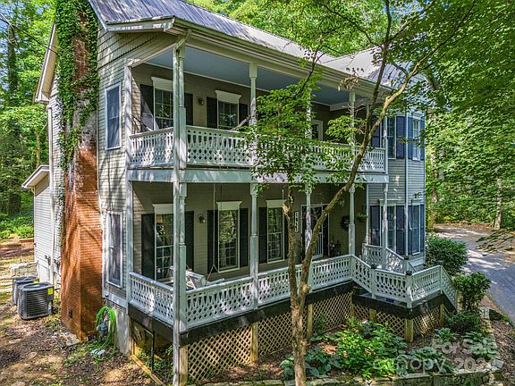 Immerse into the serenity of NC mountain life in this tastefully designed Victorian-inspired home: a move-in ready retreat, sure to impress. Nestled in a private wooded setting, imagine sipping coffee listening to birds chirp from an oversized covered front porch. Envision entertaining guests throughout the spacious main level as the open kitchen & breakfast nook lead an easy flow out to the brick patio- where the inviting backyard features a fire pit, gazebo and custom playground.