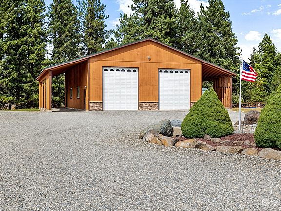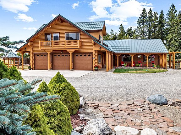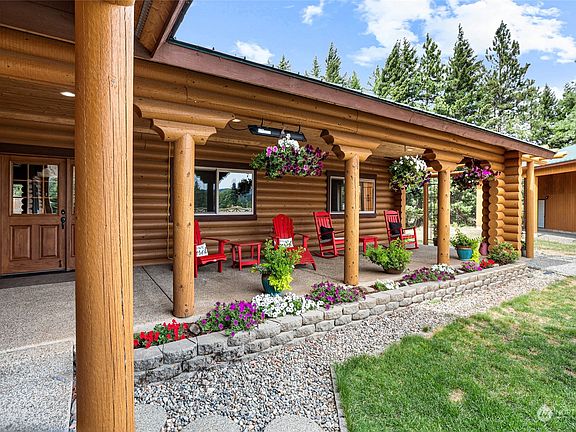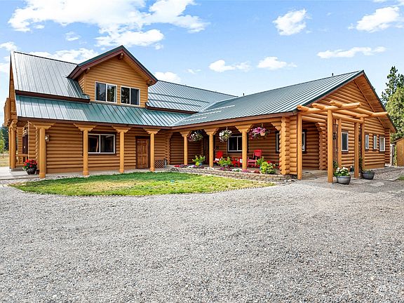 Stunning 4-bed, 4.25-bath Log Home on 3 acres with views of Peoh Point. Including; granite counters, heated tile floors, 3 gas fireplaces, new carpet, generator wiring, private well, garden shed, 40x60 (2400sf) shop w/side awnings, new continuous seam metal roofing (home and shop), washer/dryer, new fridge/dishwasher, living rm TV with surround sound system (included). Downstairs; wet bar, office w/custom desk & bonus sun room. Upstairs; suite with kitchen (no stove) and open loft that leads to a balcony. Covered front porch, raised garden beds, fruit trees and chicken coop. Don't miss out on this beautiful home with fantastic amenities that is close to town yet quiet and peaceful with amazing neighbors all around.