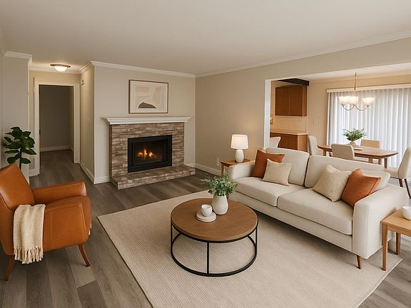 Charming brick-faced fireplaceAbundant natural lightWarm comfortable layoutFull suite of appliancesFreshly paintedGenerous walk-in closetElectric range with hood