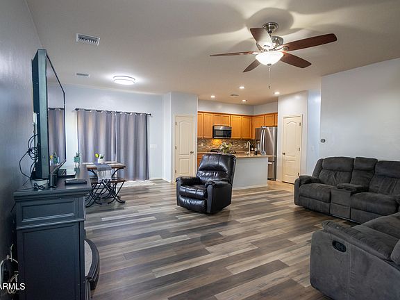 As you enter, you'll be greeted by an inviting open floor plan that seamlessly connects the kitchen, living room, and formal dining room. The kitchen boasts a large granite countertop island, perfect for entertaining or casual dining, providing a focal point that overlooks both the living and dining areas.