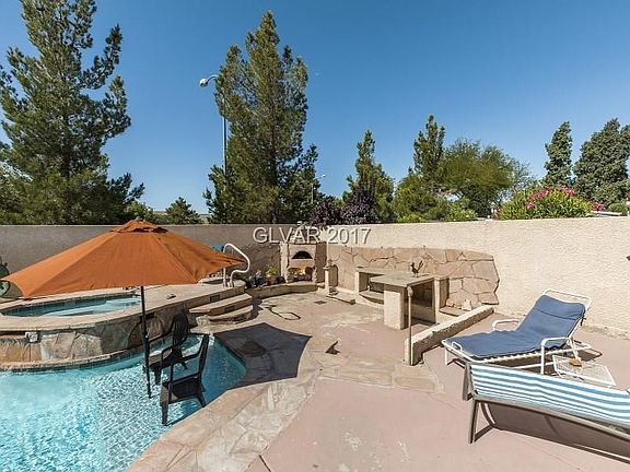 Stately 5-bedroom 2-story. Economical solar powered home. Glistening resort-like pool/spa/waterfall. Built-in stone BBQ includes pizza cooking shelf. Large covered stucco patio. Breathtaking view of mountains and greenbelt/park from 2nd floor balcony. Massive master BR suite with luxurious master bath and enormous closet. Convenient 1st floor BR/den/office with dedicated 3/4 bath. Convenient to elementary school, shopping, dining, I-95 and I-215.