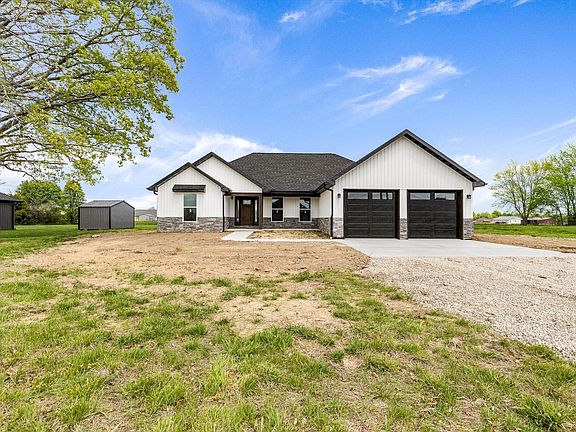 Check out this absolutely STUNNING brand new home in Seymour! This is truly a rare find with too many custom features to list! As you walk in through the front door, you will be greeted by tall ceilings finished in dark car siding, and an open concept that give this home that elegant and spacious feel that will have you falling in love. In the kitchen you will find all stainless appliances, granite countertops, solid wood cabinetry with soft-close hinges, and a very large island perfect for prepping meals or entertaining guests. Flowing from the dining room and kitchen is a beautiful french door leading out to a 12 x 20 covered back porch overlooking the back yard and open hayfield. This outdoor space is perfect for those summer evening BBQ's or drinking your morning coffee. On one side of the house, you will find the master suite complete with a double vanity, jetted tub, walk-in shower, and large walk-in closet. The other side features two spare bedrooms and a second full bathroom. This home also features a spacious two car garage with a climate controlled storage/utility area, all sitting on a level half acre lot with two large white oaks in the front for shade. You truly have to see this home to appreciate it, schedule your showing today!