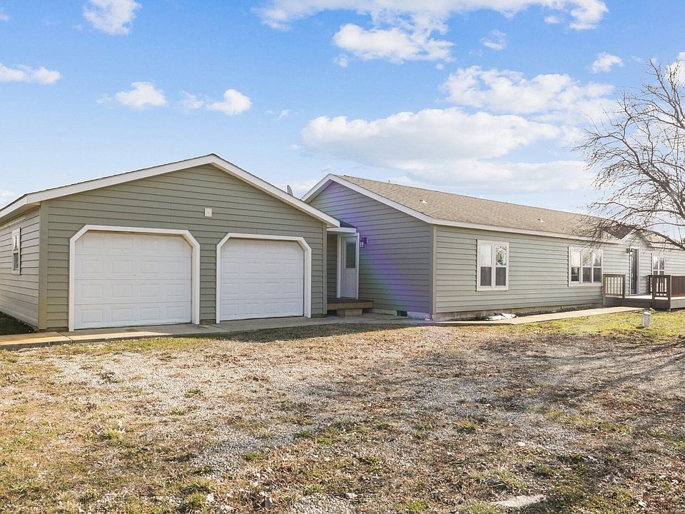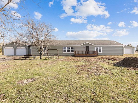 Welcome to 10530 Baldwin! Very nice, upscale remodel is 90% complete, awaiting your finishing touches, see list at end. This 2128 sq ft, open floor plan, Ranch sits on 5 acres, has 3 (THREE) Master Bedroom Suites! 3-1/2 baths total! Buckeye theme Master has zero threshold shower. Granite kitchen counters. Two-car AND one-car garages. Full crawl space. Walnut hardwood floors. See Floorplan for layout. Home is stick built modular on a steel frame (on-frame modular), NOT a manufactured home. Pond and gun range in rear. Convenient access to US62 and I-71. Possession at closing. Cash preferred, conventional loans considered. As-Is. Needs kitchen appliances, BR flooring, roofs/gutters, rear decking, siding completed, grading/landscaping, gravel/drive, punch out. Appr $525,000+ ARV