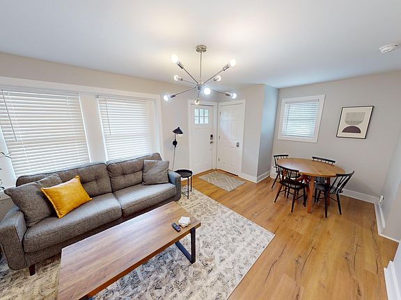 This fully renovated 3-bedroom, 2-bathroom home in Carmel offers a minimal yet cozy feel with a clean, sophisticated white aesthetic. The stunning new kitchen boasts bright white cabinets, butcher block countertops, a large stainless steel sink with a gooseneck faucet, and brand-new stainless steel appliances, including a 5-burner gas range. Laminate flooring runs throughout the high-traffic areas, while the bedrooms feature cozy carpeting. The master suite includes a remodeled full bath with a tiled walk-in shower, and the guest bath offers a tub/shower combo. The clean basement houses the furnace, water heater, and laundry area. The detached 2-car garage comes with a new opener and service door. Located in a quiet neighborhood yet conveniently close to all amenities, this home is perfect for you!