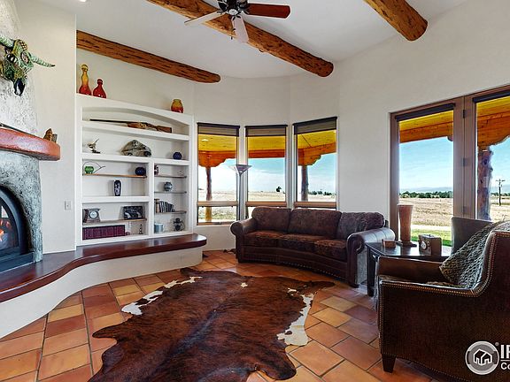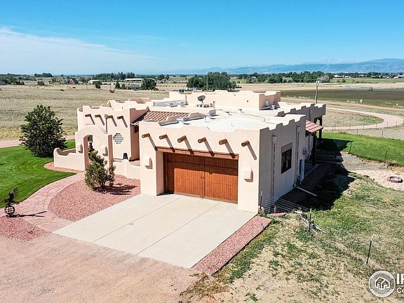 Do you hate spectacular mountain views? Detest the uniqueness of a custom home? Does your agoraphobia get triggered if your neighbors aren't 20' away? This house is not for you. This custom southwest home offers a massive primary suite with two additional bedrooms, each with their own exterior door and patio. The property also includes a 2021 built 42'x64' Morton building with 17' eaves, 14x20' door - fully concreted, elec w/220, water, 1/2 bath and insulated workroom, with RV dump on site. Finishes will impress - concrete counters, handmade Satillo tile with heated floors in areas, real wood logs, beetle kill trim and cabinets, and check out the seashell showers! Also you'll find a proper man-cave, or great family room, in the basement. Furnace new 2019, water heater new in 2020. Did I mention fantastic views? Easy access to I-25; 20 minutes to Ft Collins and 30 minutes to Cheyenne.