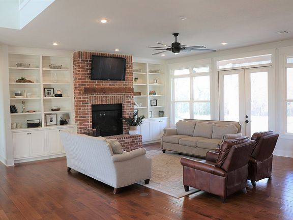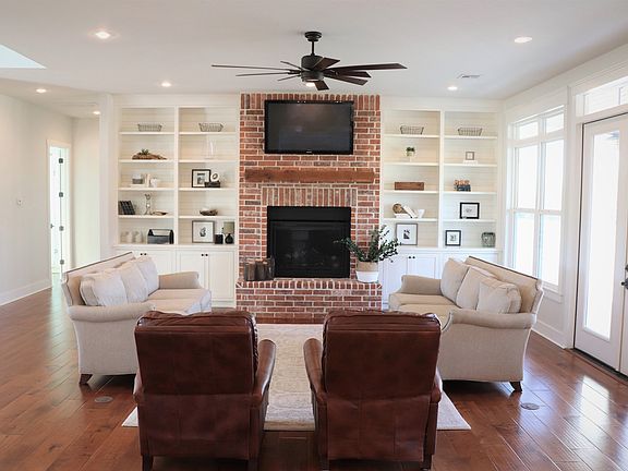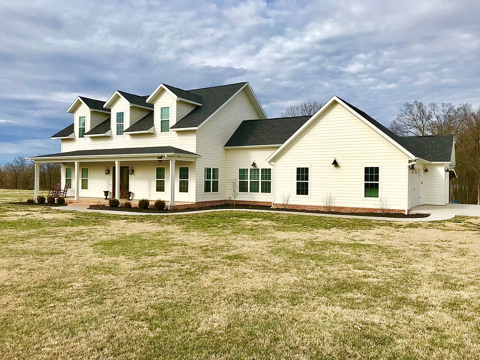 Absolutely stunning modern farmhouse with 5 beds, 3.5 baths and 6 acres of breathtaking treelined land. Love to entertain? This home has a large open living area overlooking the chefs kitchen with an oversized quartz island, creamy farmhouse sink, 6 burner Kitchenaid stovetop and large walk in pantry. Right off of the living area you will find a long covered patio connected to a screened in porch with floor to ceiling outdoor fireplace. The master suite has a huge walk in closet, spacious subway tiled shower and deep soaker tub. Upstairs are 4 additional bedrooms and access to the attic with tons of storage. Beautiful light fixtures, shiplap accents, lovely brickwork and gorgeous hardwood flooring capture the beauty of this sleek home. It is perfect for you and your family with plenty of room for outdoor play and activities, plus the property is right down the road from the brand new Evening Star Elementary School.