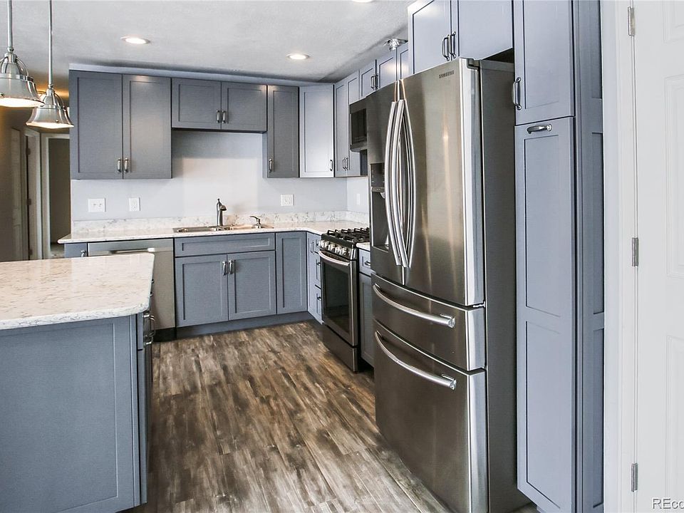 BACK ON MARKET - BUYERS LENDING FELL THROUGH -Gorgeous condo situated with a Lake Front and Mountain view in Lakewood just off of Kipling and Jewell. 2 bed/2bath, Master Suite with balcony, walk in closet and private full bath, open floor plan, gas fireplace, huge balcony off of the living room offering lake and mountain view. 2018 remodeled kitchen features Samsung stainless steel appliances, gas range, granite counter tops, soft close cupboards and drawers, pull out shelves in cupboards & pantry as well as kitchen island with bar seating. New hardwood flooring through out main living area, kitchen and hallway. This unit is rare as it is one of few units that the garage is truly attached; providing access from the garage directly into the interior. The garage has ample storage overhead. One reserved parking space and visitor parking is also provided. Open space behind the community features a lake/pond and paved walking/biking trail. This unit has just a few short steps up to the front door and from the garage into the interior. Pet friendly HOA. Please contact the listing agent with any questions or requests for private showings.
