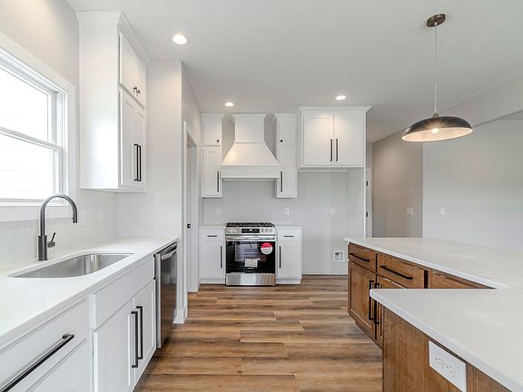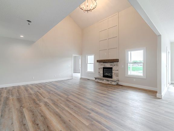 This newly built spacious home features 3100 sq ft including 5 bedrooms and 3 full baths, plus a bonus room. Wood floor entry into this large great room with impressive stone fireplace, tall ceilings, and open to upstairs with rod iron railings. 3 bedrooms on main level and 2 upstairs. The open kitchen has both white cabinets and a stained island with Quartz counter tops in both the kitchen and bathrooms. Large walk-in pantry, utility room, oversized garage perfect for storage or a work area. Covered back porch!! This .55 acre lot is at the end of a cul-de-sac in beautiful Tullymore Run subdivision