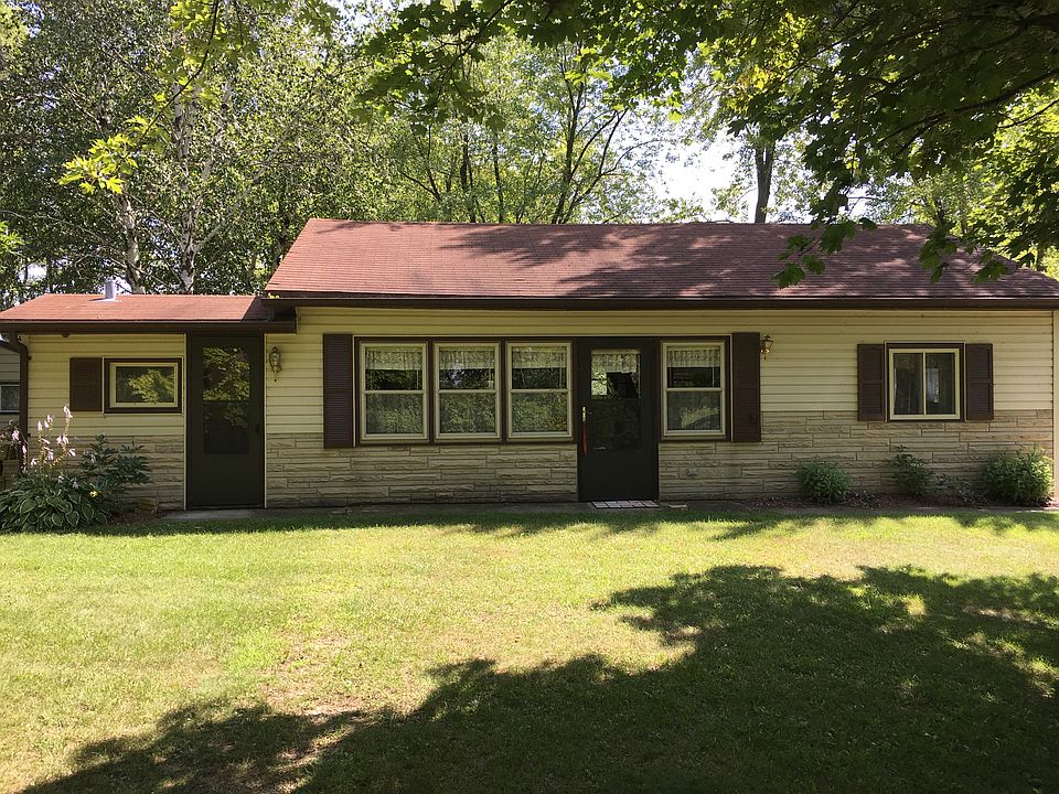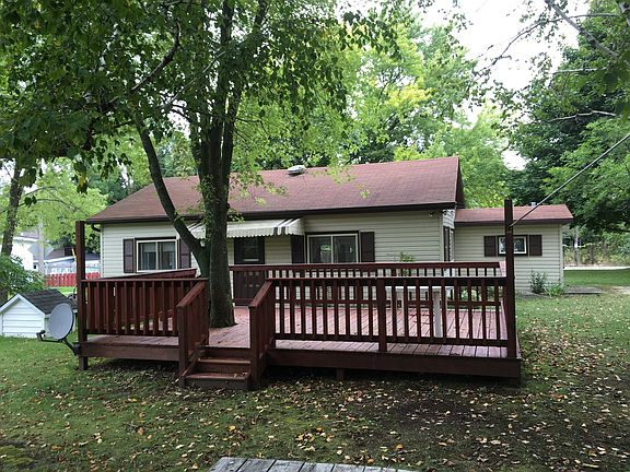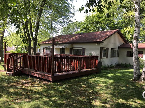 Great view of Wilke Lake.... make this cottage your own. Only 150 ft. from the lake. Large great room, 1 BR( could be 2),1 bath,kitchen, large deck and 2 storage sheds perfectly landscaped. Great recreational 100 acre lake with bass, northern and croppie,public access 1 mile away,hunting and premiere golf course close by. Low taxes and 20,900 S.F. lot-estate settlement.