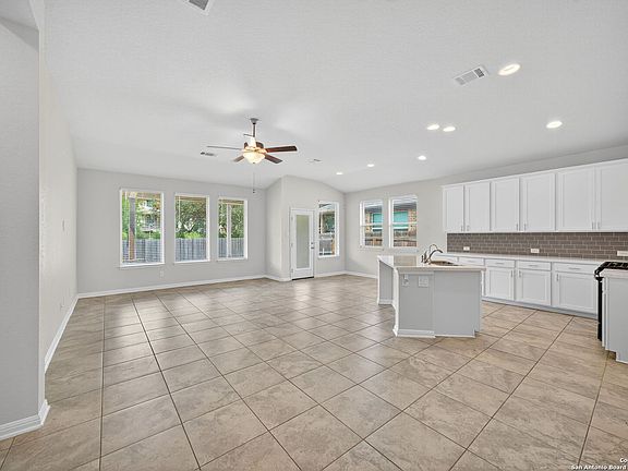 Welcome Home to your very own open floor plan! As you enter through the front door, you're greeted with an elongated view into the great room, seamlessly open to the kitchen and breakfast area. The oversized island is perfect for the chef in the family, offering plenty of counter and cabinet space. Large windows overlook the backyard and covered porch, filling the home with natural light. This home also offers abundant storage, along with a versatile separate dining room that can double as an open office. Retreat to the primary bedroom with its spa-like ensuite bathroom and massive walk-in closet. Each room is uniquely zoned for comfort and privacy. Recent upgrades include whole-house fresh paint, a brand-new microwave, and all carpets replaced with modern vinyl flooring. Ideally located near USAA, military bases, major offices, and shopping areas.