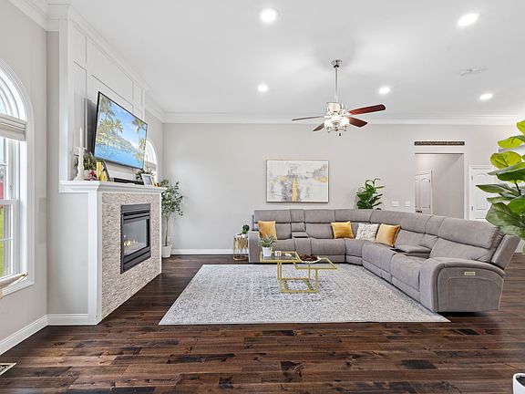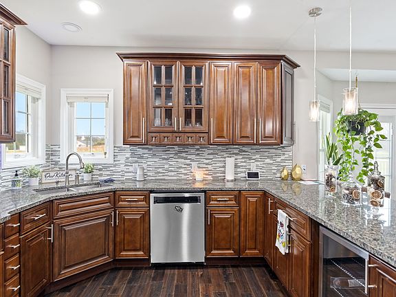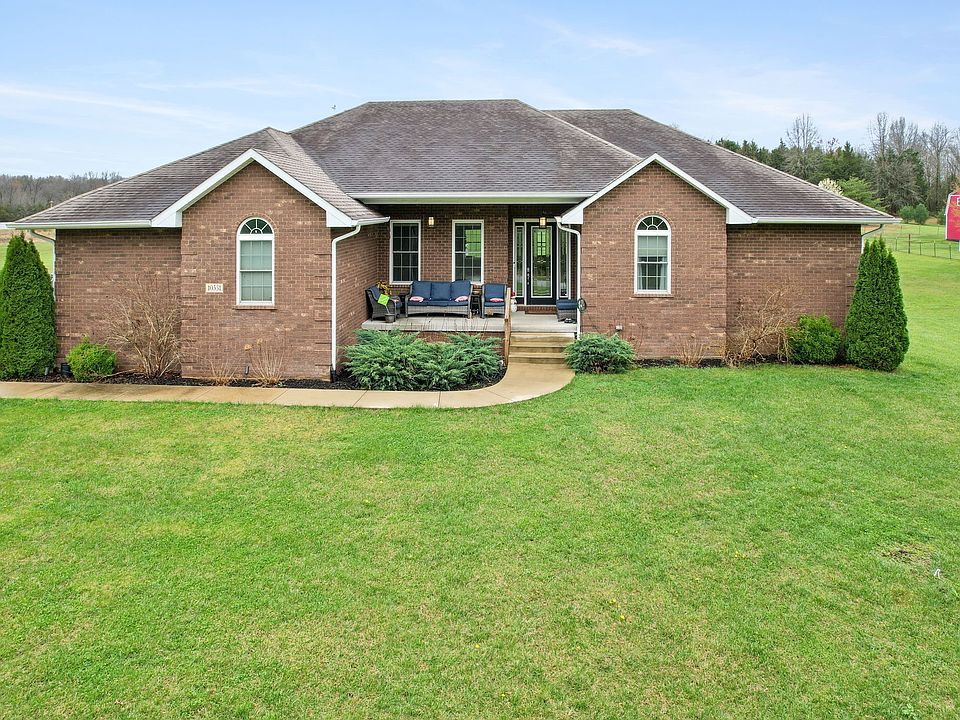 Your Sprawling Ranch Retreat Awaits! Step inside this stunning 5 bedroom, 3.5 bath ranch-style home built in 2016. When you enter you'll be greeted by beautiful engineered hardwood floors and an open floor plan that is ideal for modern living. Cozy up by the gas fireplace on chilly nights in your massive living room. Crown molding adds a touch of elegance throughout, while the meticulous attention to detail is evident in every corner. The gourmet kitchen is a chef's dream. Imagine gatherings flowing seamlessly from the kitchen to the expansive back deck, where you can soak in the tranquility of your property that boasts over 4 acres of private land, perfect for creating your own backyard oasis. Unleash your inner entertainer in the finished walkout basement by hosting epic movie marathons in your theater room or make your favorite cocktails in the wet bar. This basement offers endless possibilities - a game room, home gym, or the ultimate teen hangout! Don't forget about the 3-car garage where there's plenty of room for all your toys and treasures. This home offers more than just space, it offers a lifestyle. Don't miss your chance to own a piece of paradise! Schedule your showing today!