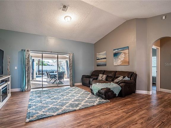 B E A UTIFUL HOME!! Amazing vaulted ceilings that makes the family room look and feel even bigger than it already is. Tons of natural light coming in that brightens up the room. Great kitchen set up with white cabinets and bevelled edge countertops. Built in oven and many cabinet spaces. Cozy dining room for amazing family bonding time. The master bedroom is spacious and the master bathroom is gorgeous. Tile that runs up to the ceiling with a rainheads shower and glass enclosure. You have access to the pool from there as well. The second bedroom is oversized. The bedroom also has access to the back porch. The back porch is like a cabana style feel with curtains that pull over for privacy. Fans above to help cool down the summer heat or a dip in the nice cool pool. There's a shed off to the side of home for extra storage. This home great for anyone trying to find one. Come. See. Buy!