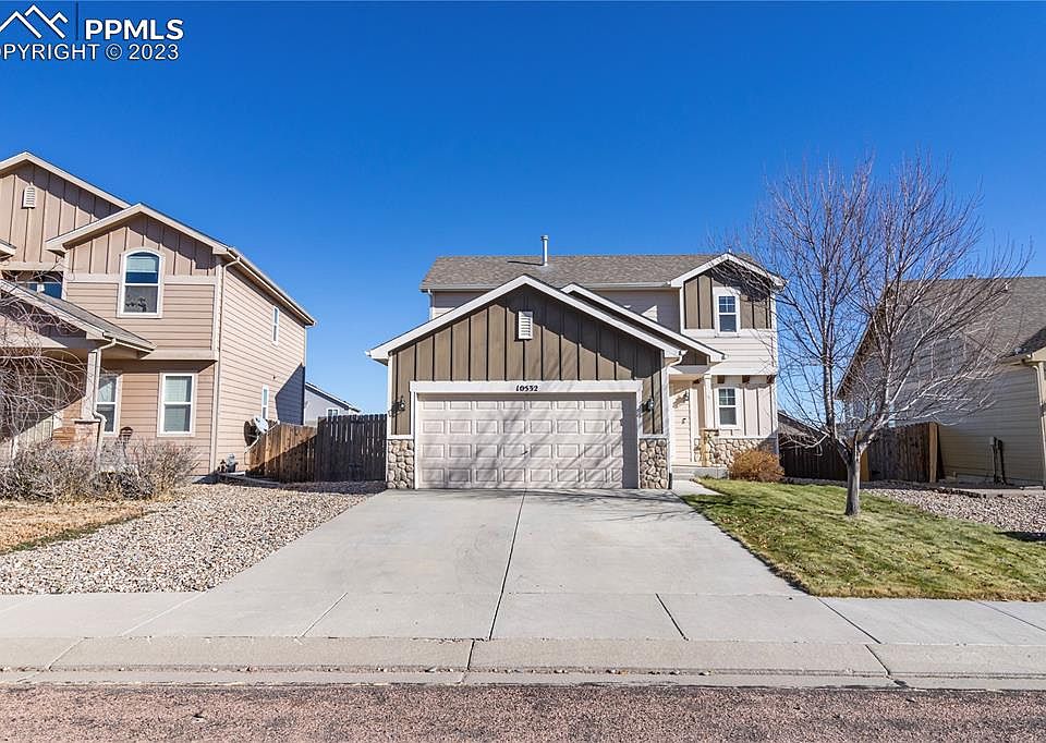 Welcome to the perfect blend of comfort and convenience in the sought-after Lorson Ranch neighborhood! As you step inside, you are greeted by newer laminate flooring. This homes open floor plan makes living functional. The kitchen is equipped with two pantries making storage easy. A spacious mudroom adds a practical touch, ensuring that daily activities remain tidy and well-managed. As you walk upstairs, you will find the primary bedroom with a 5 piece bathroom that includes a nice soaking tub. Two additional bedrooms on the second floor provide flexibility and comfort. For added convenience, the laundry room is strategically located upstairs. The possibilities continue downstairs with the unfinished basement, a versatile space waiting for your personal touch. Whether you envision a cozy entertainment area, a home gym, or additional living space, this blank canvas allows you to bring your dreams to life. The backyard is a great size that features a newly replaced deck great for entertaining guests. Additional updates include a water heater, water softener, and furnace that are just two years old, providing peace of mind and efficiency. Enjoy a short drive to Fort Carson, Peterson Space Force Base, and nearby shopping centers. Lorson Ranch is equipped with walking trails, parks, a school, & open green spaces.