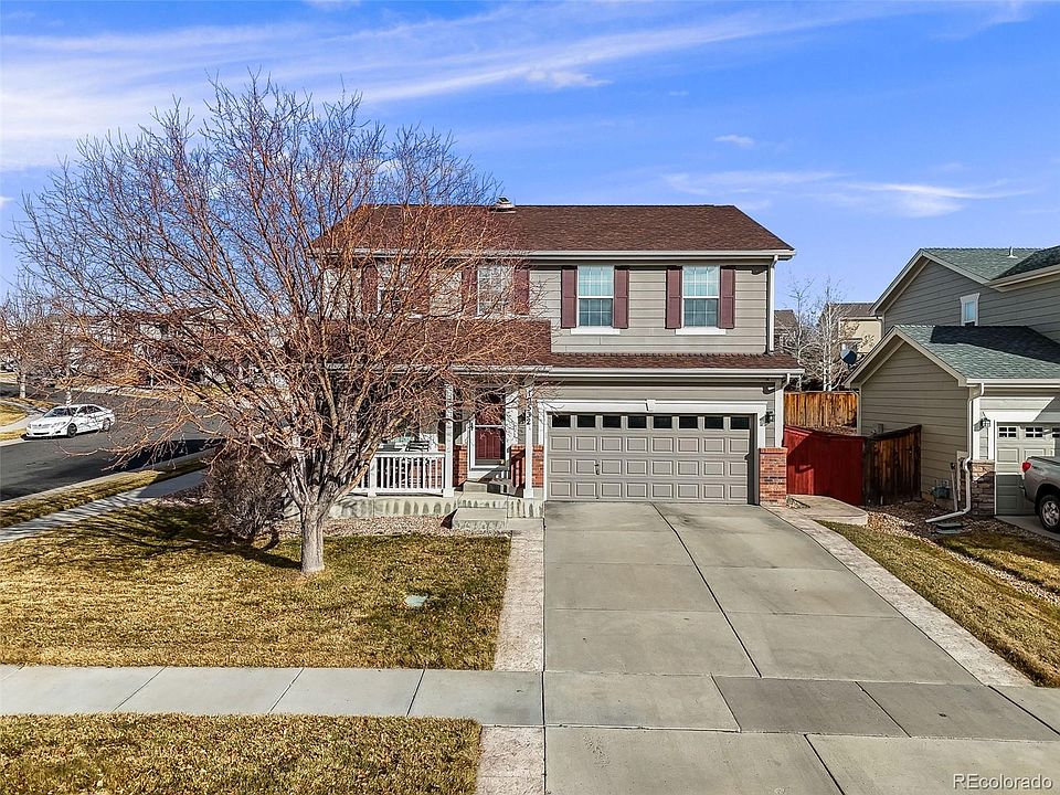 Welcome to this beautifully maintained home on a prime corner lot in the sought-after Buffalo Run Mesa community, where comfort, style & functionality come together seamlessly. Step inside to a welcoming family room that flows into the open-concept kitchen, complete w/ cherry cabinets, granite countertops, updated light fixtures, & plenty of counter space making it elegant & practical. The formal dining room is a charming space for hosting memorable dinners w/ natural light streaming through bay windows that add character throughout the home. Upstairs you’ll find a thoughtfully placed laundry room for added convenience & a versatile loft offering endless possibilities as a home office, playroom or cozy second living area. The primary suite is a luxurious retreat featuring a fully remodeled ensuite bathroom w/ a walk-in shower, modern finishes & ample storage making it a serene space to unwind. The unfinished basement is a blank canvas to design to your needs for additional living, recreation or storage. Outside, the backyard is an entertainer’s dream, featuring a spacious covered patio w/ stamped concrete, a firepit for cozy evenings & stunning mountain views that provide the perfect backdrop for relaxation. The home boasts thoughtful upgrades, including new flooring on the main level, stylish light fixtures throughout, ceiling fans & a gas fireplace for added comfort. Additional highlights include an air conditioning system w/ a master control panel replaced in 2022, bay windows that enhance the aesthetic appeal, & HOA fees conveniently included in property taxes. Located just minutes from grocery stores, shopping, parks, scenic trails, & a quick walk to the community pool, this home is in a vibrant, growing area w/ open spaces & friendly neighbors, where summer fun for kids is a hallmark of the community. This move-in-ready gem offers everything you need to create a lifestyle of comfort & enjoyment in the desirable Buffalo Run Mesa neighborhood!