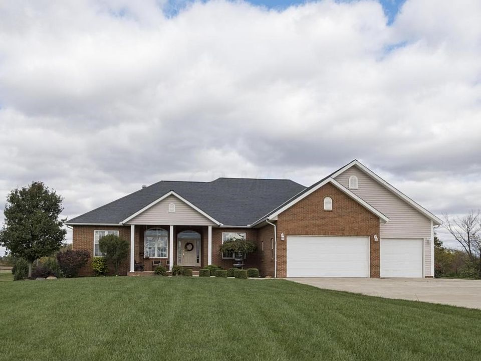 Spectacular Bloom Township ranch! A 2.6 acre retreat with hilltop views for miles! Beautifully appointed throughout with great closet space, plenty of nice baths and 2 suites. The 1st Floor Owner's Suite features trey ceiling, walk-in closet and spacious bath with double-sink vanity, jetted tub and shower stall. Split floorplan places secondary bedrooms at the other side of the house and a full in-law suite is located in the finished lower level. Formal Dining Room, large eat-in Kitchen and bar space. Cook's kitchen offers an abundance of cabinetry and counterspace, stainless appliances and double ovens! Both 1st Floor and Lower Level Laundry Rooms! Lower Level also features an office, pool room with wet bar, family room & radiant heated floors!