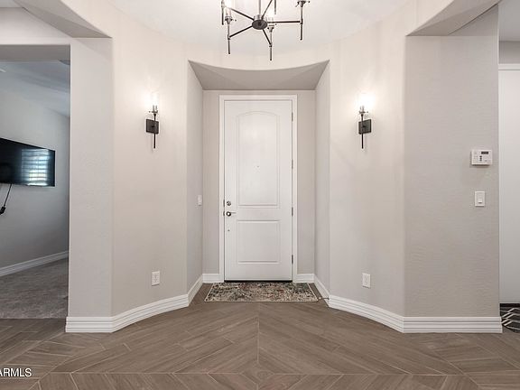 Beautiful single level, 3 car garage home located in the highly sought after community of ''Encore at Eastmark''. This split floor plan features 3 large bedrooms, a den, and a great room/kitchen space that is perfect for entertaining. The gourmet kitchen offers ample granite countertops, upgraded cabinets, tiled backsplash, a grand center island, and stainless steel appliances. The master bathroom features double vanities, a spacious master shower, and a large walk-in closet. This home also features custom plantation shutters and wood like tile throughout, as well as a surround sound speaker system that can be enjoyed both in the home and on the patio.