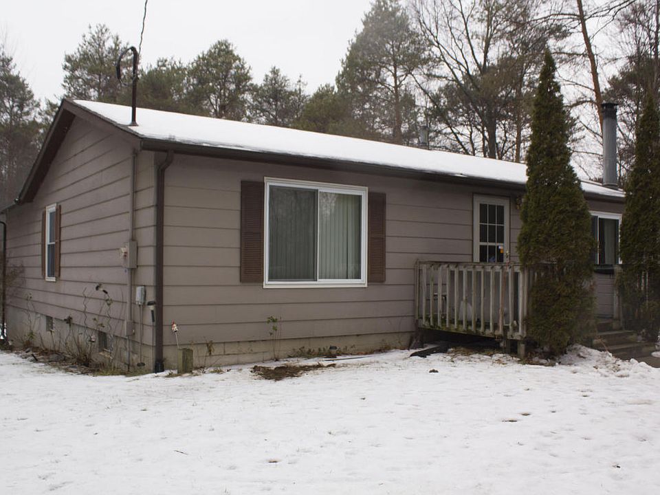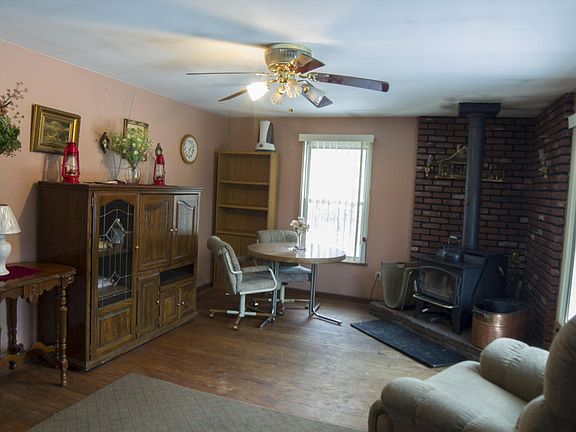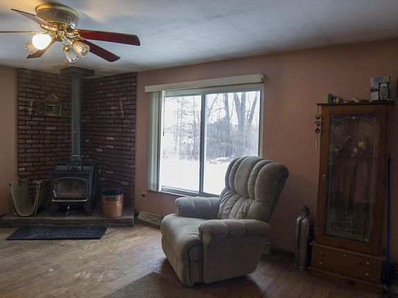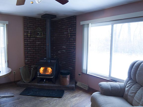 This ranch home on a walkout basement sits on a wooded 5 acre lot and is across the street from 500 acres of state land. The living room has a quality wood burner that the seller uses to heat the whole home (there is also a furnace). The kitchen with an eating area leads to dining room or a 2nd family room. The sellers enlarged this room by removing a wall seperating the 3rd bedroom. Sellers are offering a $2,000 allowance to put the wall back up to gain the 3rd bedroom. A master bedroom wi th a full bathroom, another bedroom & another full bath finish off the main floor. Downstairs in the walkout basement is a huge rec room, another room that could be finished for another bedroom, a laundry & storage area and a workshop. A 24x30 polebarn has a 14x30 lean to perfect for an RV or boat