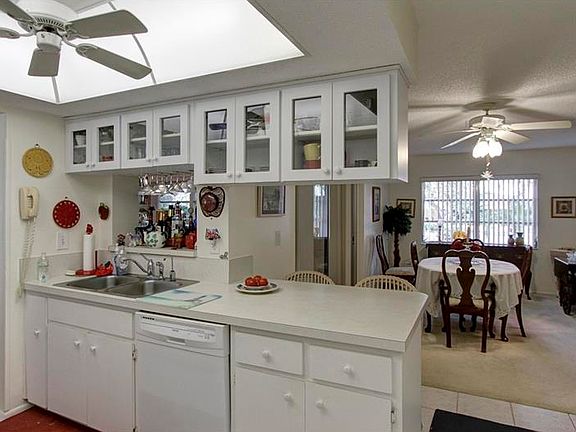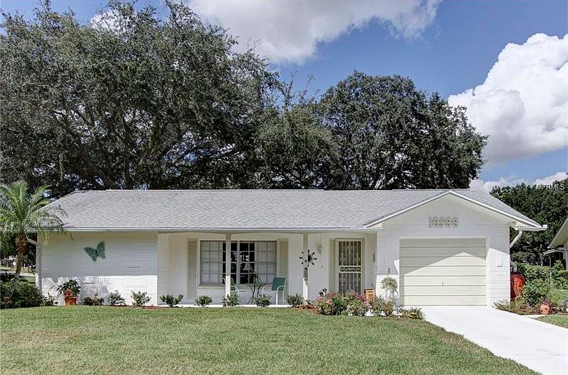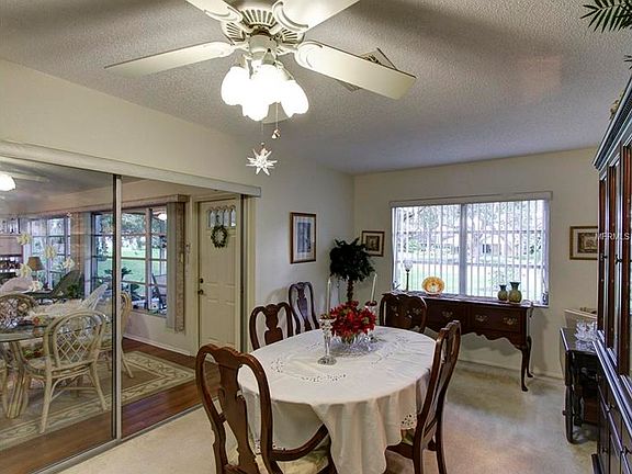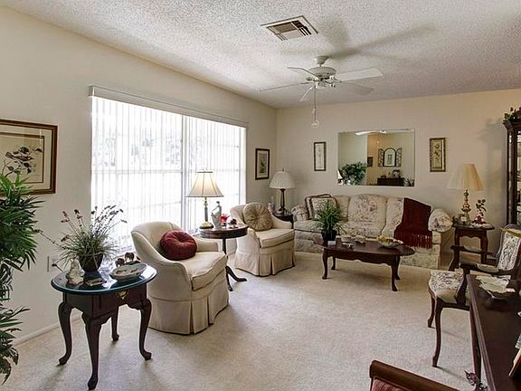 AWC - Taking Backup Offers Very well maintained 2/2/1 in 55+ community. Spacious floor plan with formal living room and dining room. Large finished porch with built-in bar has laminate flooring and wall AC. Attached screened porch overlooks paver patio and landscaped back yard. Sprinkler system on well and fresh-water catch barrel to water lawn and landscaping. No rear neighbors. Lots of activities at the nearby community center including large heated pool and spa, library, arts & crafts room, wood shop, billiards and card room, meeting room, sewing room, ping pong room, shuffleboard, bocce ball, and two tennis courts - all overlooking a large lake is included in your HOA Community dues. Call today for more details about this great home.