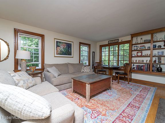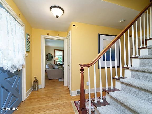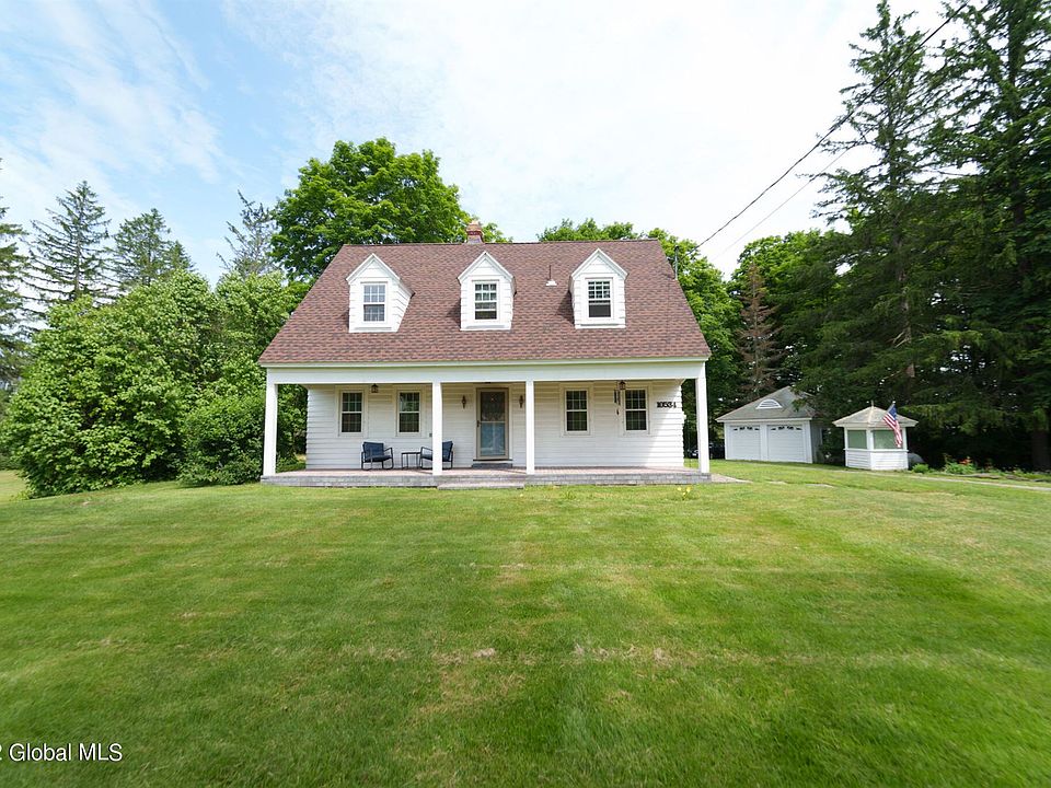 Nature at its Best on a 1.56-acre postcard setting. Updated with TLC this Cape Cod Style Farmhouse is loaded with character. Both sides of the property are tree lined. Secluded backyard is parklike and wooded. Follow the pathway to the seasonal stream and waterfall. Recent improvements include kitchen remodel, newer cabinets, countertops, and island. Sliding glass door from sitting area leads to the stone patio. First-floor full bath with laundry area has been conveniently placed. Refinished hardwood floors throughout. Central Air (2020). Many newer windows. Several doors replaced. Living room offers propane gas fireplace. ROCK ON the rebuilt front porch! Bonus electric service to garage. Public Sewer Private Well. EZ access I-88, NYS Thruway, 30 minutes to Downtown Albany. Welcome Home!