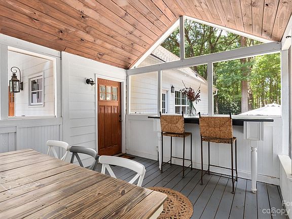 Cape Cod-style ranch nestled on 1.6 acres in Ballantyne with main house AND guest house! Walkable to shopping and entertainment, and close to Uptown and the airport. Has the most acreage listed under $1 million in 28277. The main house is a single-story ranch with a sprawling front porch, 3 bed/3 full bath split plan, and 2 extra rooms that can be offices or flex spaces. The open-concept space, ideal for entertaining, combines a dining room, living room, and kitchen with a large butcher block island and wet bar with custom barn doors. The separate guest house, with a private driveway and entrance, is a 1 bed/1 full bath with loft, full kitchen, and dining/living area ideal for an in-law suite or short or long-term rental. Connecting the homes is a tranquil screened-in porch overlooking the large backyard and shed with room for a pool, tennis/pickleball court, and garden. With a cozy farmhouse feel and a safe, quiet, tree-lined neighborhood with no HOA, this is a must-see hidden gem!