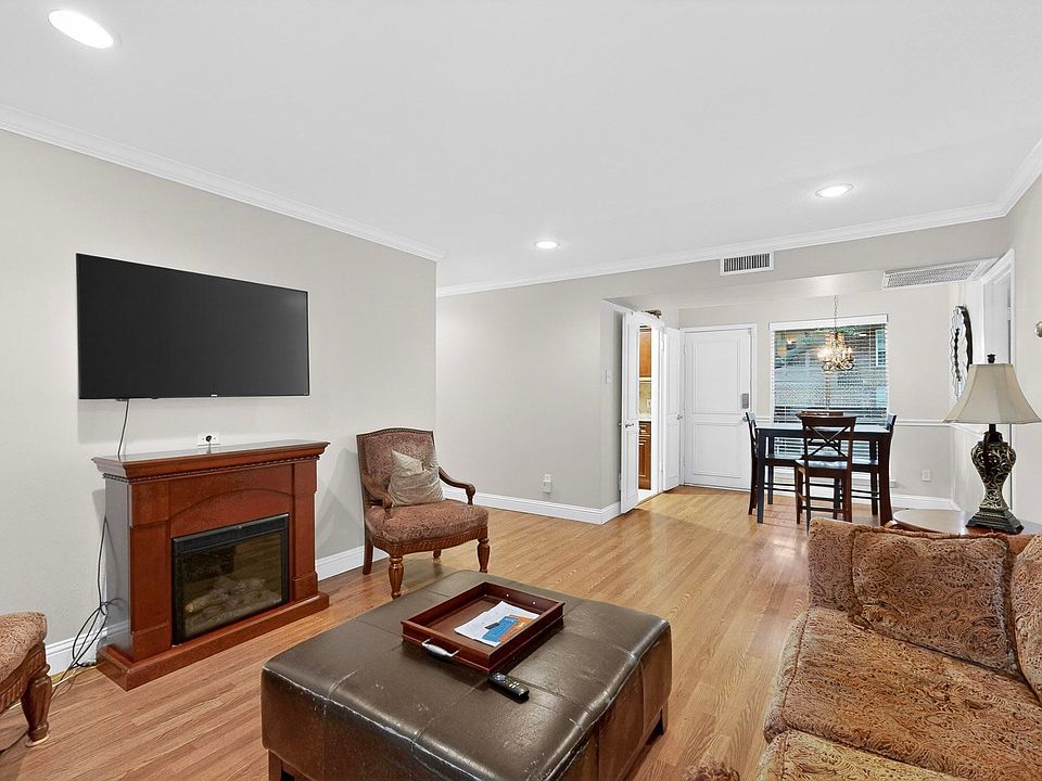 Nestled in a secure gated community, this one-bedroom, first floor unit offers peace of mind and privacy. Its central location ensures easy access to shopping centers, dining, entertainment, and major transportation routes, making it ideal for those who value both comfort and convenience. Living and Dining area have hard surface floors and a door to the covered patio viewing green space. The kitchen includes granite counter tops, travertine floors and stainless appliances. The bedroom is a nice size with walk-in closet and stack washer and dryer located in the closet. Utilities are included in the monthly HOA fees. One reserved parking space #34.
