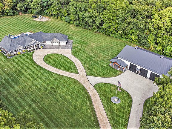 Check out this custom built 6 Bedroom 5 bath ranch style home nicely situated on 4+ acres in the Middlebury School district! The large open kitchen is a must see with a large island and a walk in pantry. The great room has high cathedral ceilings and stone fireplace and leads out to the pool area with a built in gas fireplace, a large covered patio with a built in grilling area with granite counter tops. There is also a full bath and additional pool storage room with an additional refrigerator and kitchen area. The main level also has three of the six bedrooms with the large master suite being a highlight. The large master bathroom has a large custom shower and a soaking tub. The oversized walk in closet is truly a must see. The full finished basement with polished concrete floors also has a full kitchen with full appliance package. The large fully finished outbuilding is set up for entertaining with a full kitchen and tv area. The full building has infloor heat as well as ac units. This property is truly a must see to fully appreciate! If you enjoy entertaining or are looking for a property that has had no expense spared this is the property for you.
